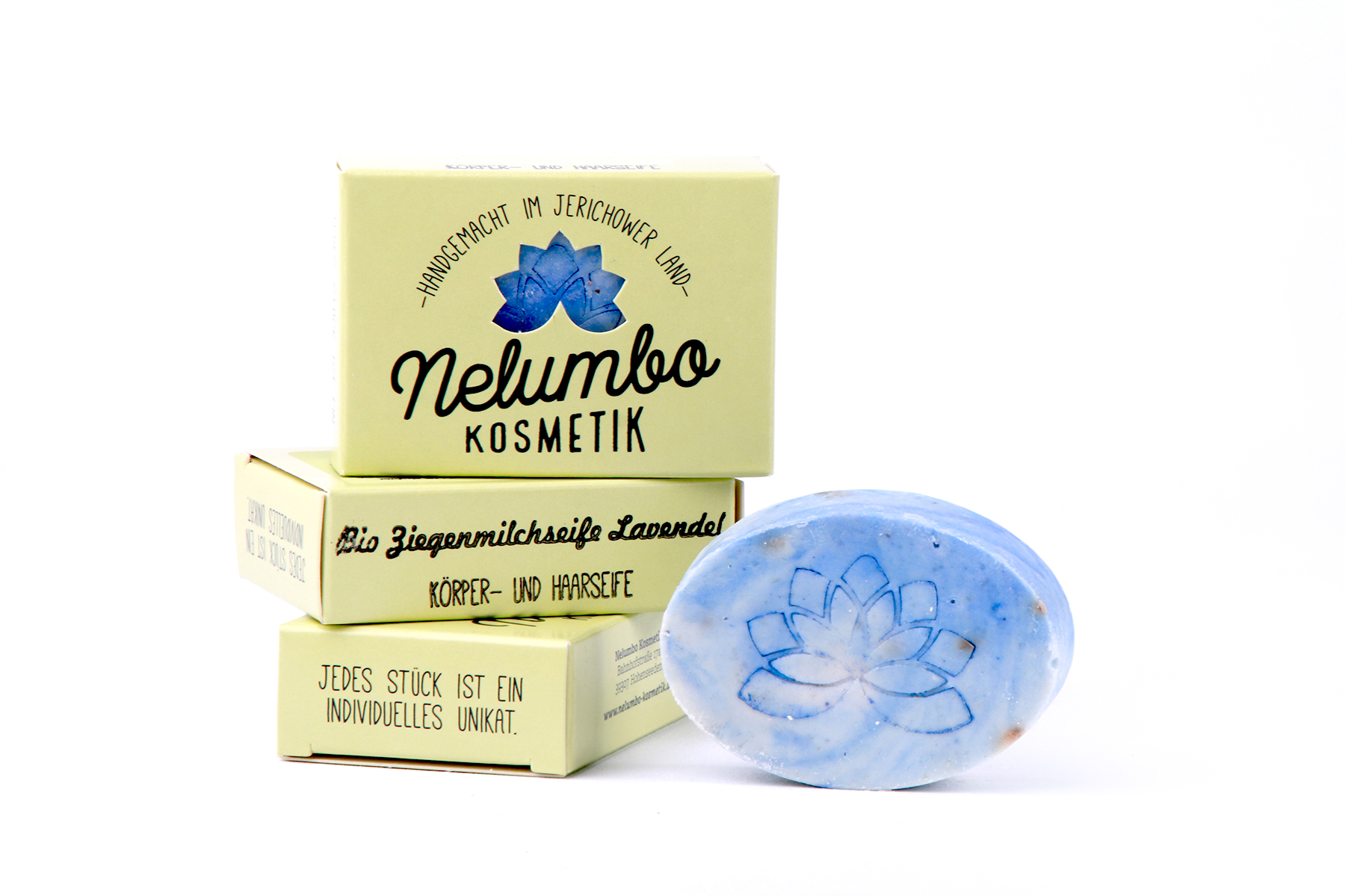 Nelumbo Seifen werden im Jerichower Land von Hand hergestellt. Dabei wird viel Wert auf die Zusammenarbeit mir regionalen Firmen gelegt. Nachhaltigkeit fängt bereits bei der Beschaffung von Rohstoffen an. Deshalb stammt die Ziegenmilch für diese Lavendelseife vom Bio-Ziegenhof in Glinde.