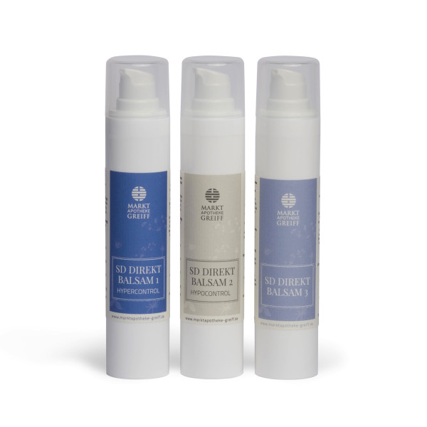 Der SD-Direktbalsam Nr. 3.1 kann bei einer Schilddrüsen-Unterfunktion therapiebegleitend angewendet werden. Eine Hausspezialität Ihrer Markt-Apotheke Greiff mit homöopathisch potenziertem Organpräparat Thyreoidea in der Potenz D5, D6 und 100 % reinen ätherischen Ölen.